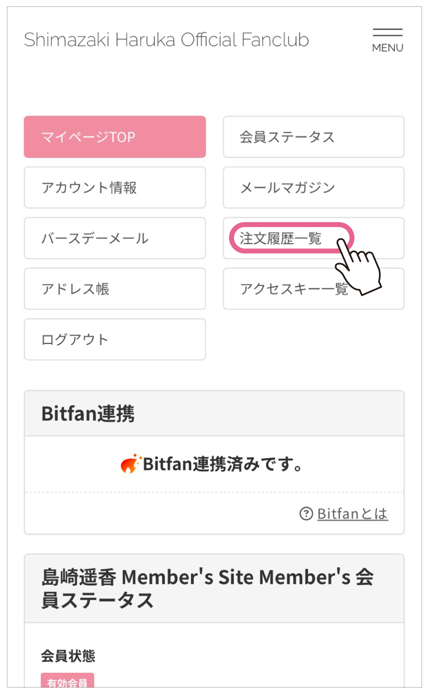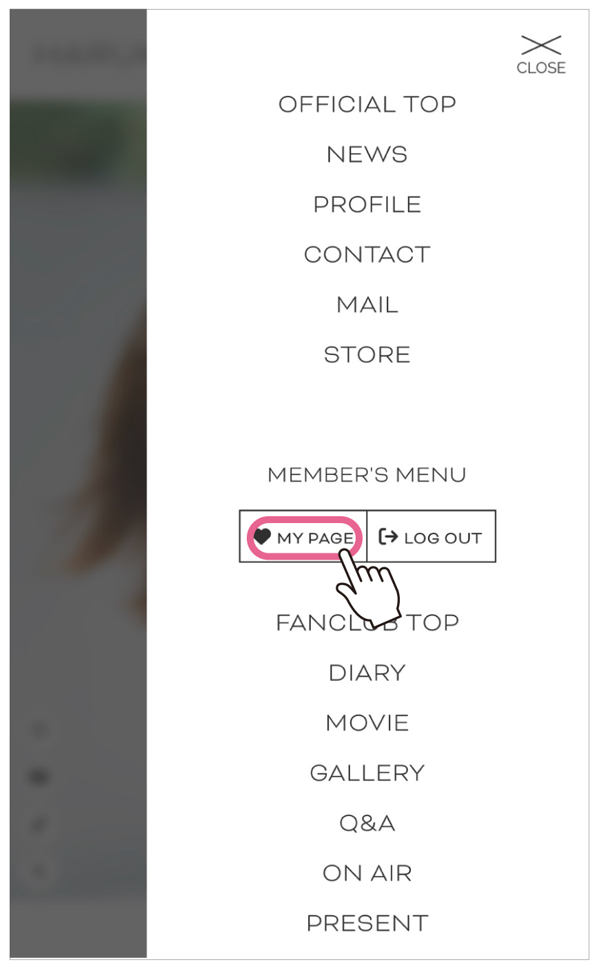①島崎遥香オフィシャルサイトの「MY PAGE」を表示