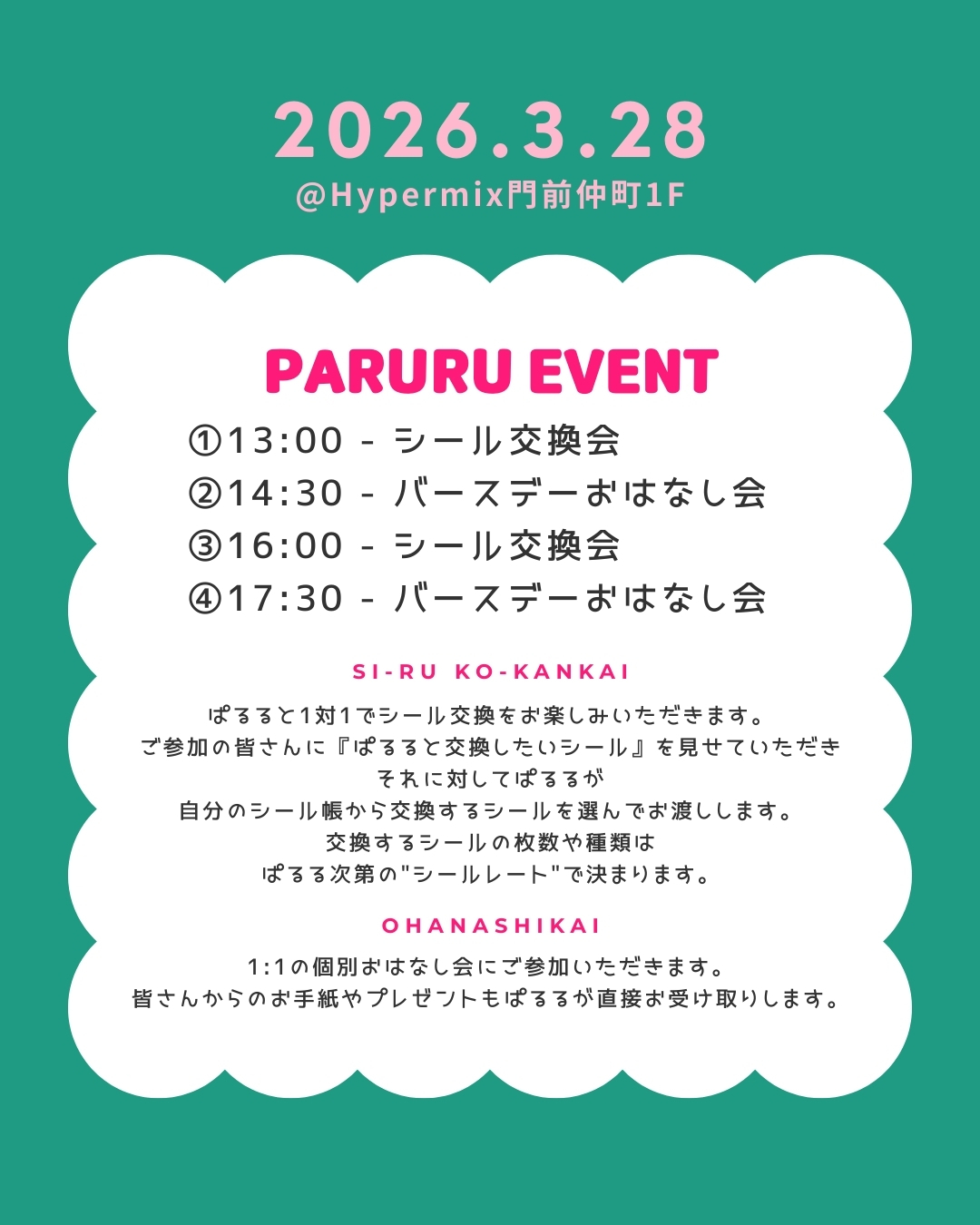 【3月28日(土)】『ぱるるのシール交換会&バースデーおはなし会』開催決定!